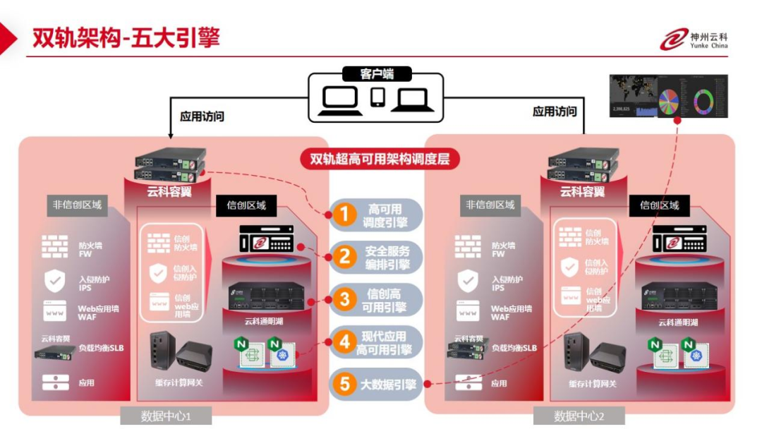 数据中心架构在自主创新的过程中分解为现有架构的非信创区和信创区的两个业务区域,在每个数据中心分为信创区和非信创区后,在两个区域之间的跨区跨域协同方法,dcbox小金库官网顺利获得5大引擎实现多层次的应用可持续性实践。